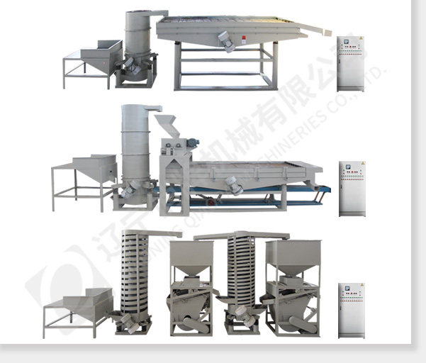 脫殼分選單元:上料斗、螺旋提升機、脫殼分選主機、回料板簧篩。